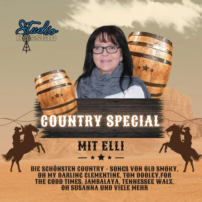 Willkommen zu Elli´s Sendung "Country Special"! Tauchen Sie ein in die bezaubernde Welt der Country Musik, wo Lagerfeuerromantik und Cowboy-Charme aufeinandertreffen. Von den klassischen Klängen vergangener Zeiten bis hin zu den modernen Hits von heute bringen wir Ihnen die besten Melodien, die das Herz berühren. Lassen Sie sich von warmer Musik und Geschichten über Liebe, Freiheit und das Leben auf dem Land verzaubern. Einschalten und genießen – die Country-Stars warten auf Sie!
